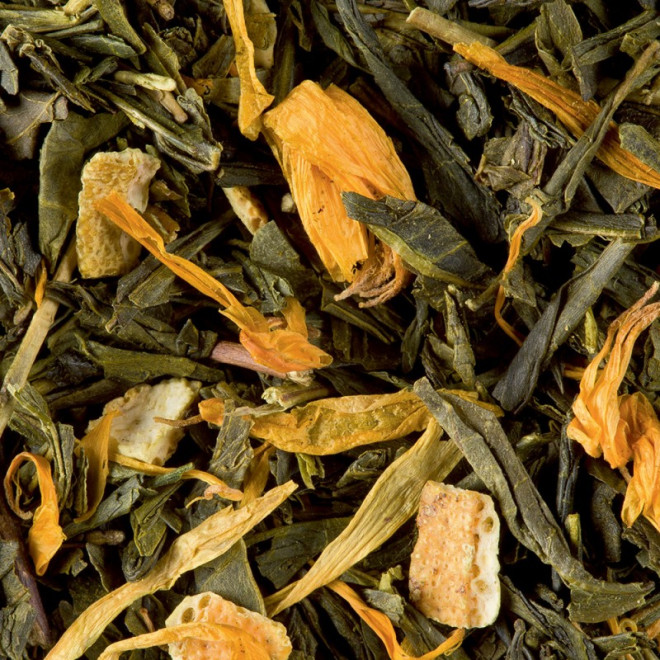 Un brin d'exotisme pour ce mélange où, des arômes pain d'épices et orange amère, des écorces d'orange et des pétales de fleurs composent, avec les notes fraîches et fruitées d'un thé vert, un thé aromatisé à la saveur étonnante et généreuse.