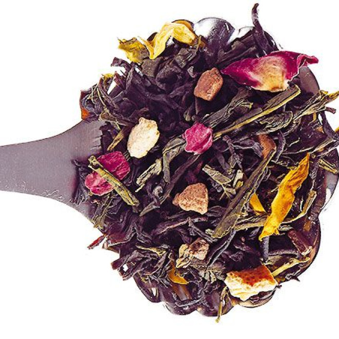 Cette composition insolite et aphrodisiaque marie les vertus millénaires du thé, des plantes et des épices. Thé mixte parfumé aux notes dominantes de gingembre et d’épices, cannelle, gingembre, clou de girofle, écorces d’orange, cardamome, anis, fenouil, écorces de citron, pétales de souci et de rose, fleurs d’oranger.