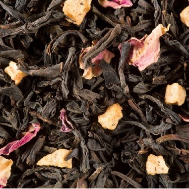 Un mélange de thés noirs associé à un bouquet fruité mêlent dans une tasse gourmande et équilibrée les saveurs de pomme, de poire, de mirabelle et de pêche.
