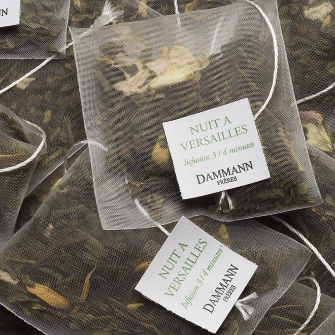 Bergamote, kiwi, pêche jaune, fleur d'oranger, fleur de violette, toutes ces senteurs et saveurs cultivées avec soin et gourmandise depuis le XVIIe siècle dans les jardins de Versailles, sont associées à un thé vert pour nous offrir un mélange hautement parfumé où, notes végétales, fleuries et fruitées se mêlent dans une royale infusion.