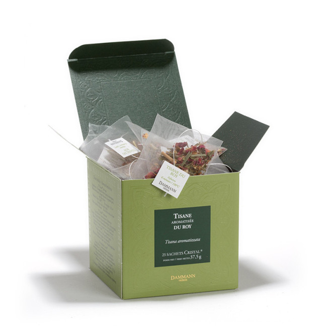 Bouquet fleuri et gourmand pour cette préparation unissant écorces d'orange douce et de bergamote, pétales de fleur, citronnelle, feuilles de cassis, boutons de fleurs d'oranger, qu'un arôme de fruits rouges complète délicieusement.