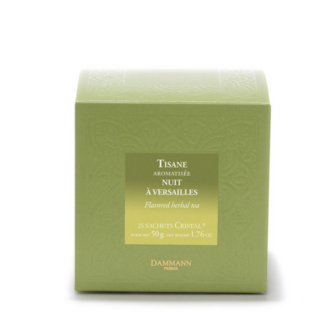Bergamote, kiwi, pêche jaune, fleur d'oranger, fleur de violette, toutes ces senteurs et saveurs cultivées avec soin et gourmandise depuis le XVIIe siècle dans les jardins de Versailles. Ces saveurs associées à la verveine et au tilleul, nous offre une tisane agréablement parfumée où, notes végétales, fleuries et fruitées se mêlent dans une royale infusion.