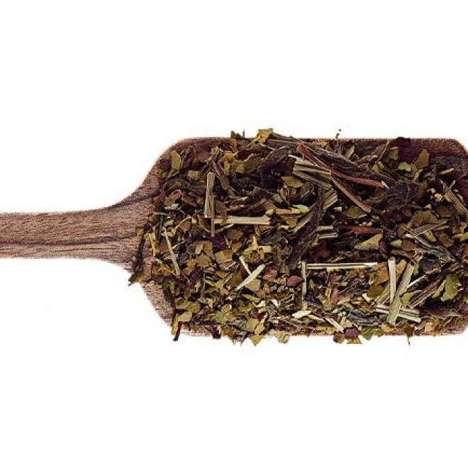 Le maté est une plante très prisée dans de nombreux pays d’Amérique du Sud qui lui accordent un certain nombre de vertus. Celui-ci est associé à du thé vert, à une pointe de citronnelle et à des notes d’agrumes pour un zeste de fraîcheur. Cette boisson est à consommer chaude ou glacée. Mélange de maté et thé vert sencha parfumé aux notes de citron.